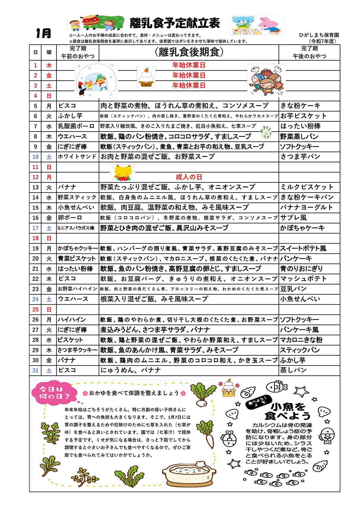 1月の離乳食予定献立表