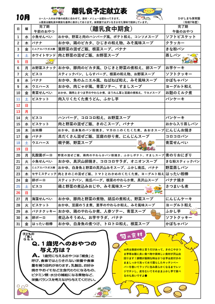 ミルク・ご飯・パンなど主食も園にて準備いたしますので、家庭から持参いただくものはございません。